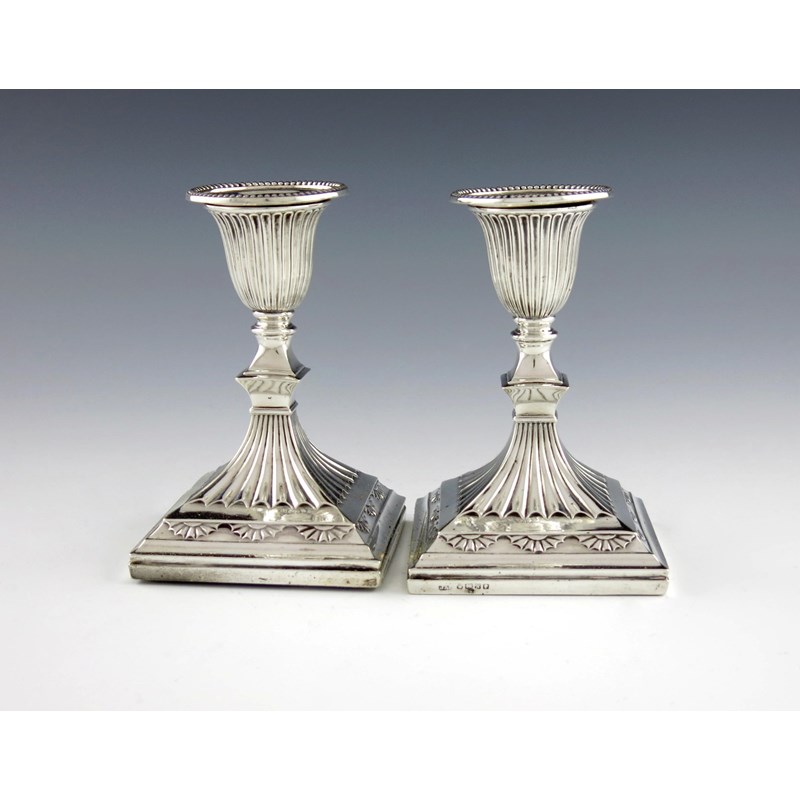 fluted urn capitals, on raised fluted square bases, height 12.5cm. (2)