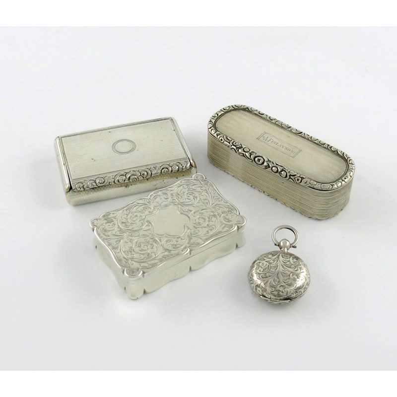 A small collection of three 19th century and Edwardian silver snuff boxes,