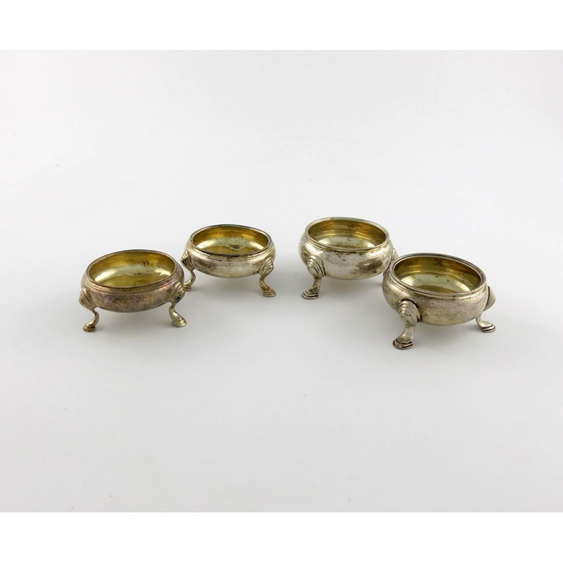 Two pairs of mid-18th century silver salt cellars