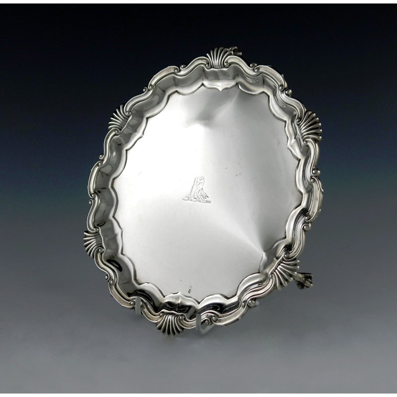 circular form, shell and scroll border, on three claw and ball feet, diameter 21.2cm, approx. weight 9.5oz.