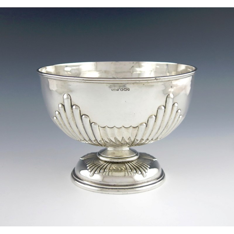 circular form, part-fluted decoration, on a raised circular foot, diameter 21cm, approx. weight 19.5oz.