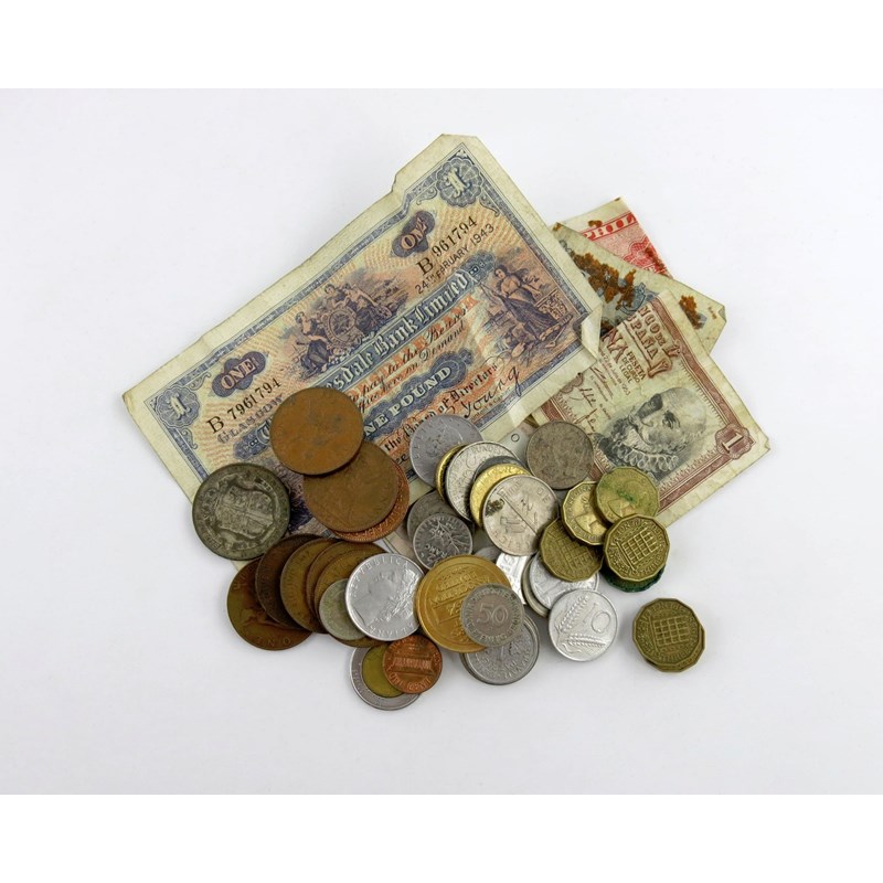 A collection of miscellaneous coins and notes, Great Britain and the World, in silver and base metals, mostly 20th century, varied state. (qty)