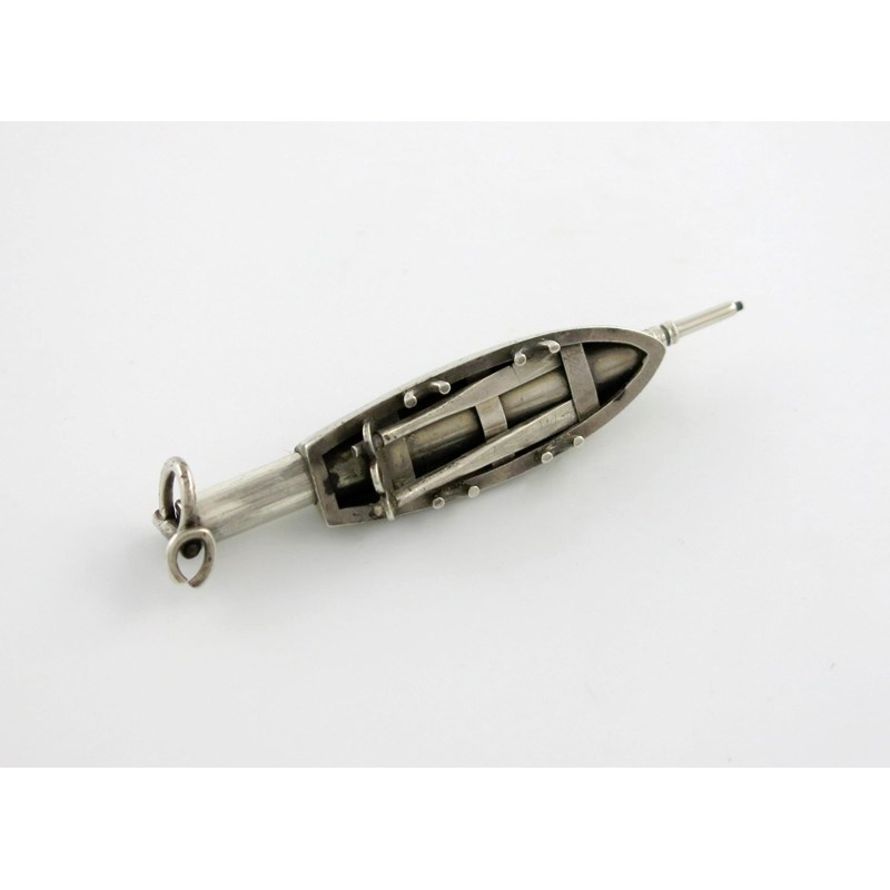 modelled as a rowing boat, with two oars, and a ring attachment, length extended 7.2cm, approx. weight 0.3oz.