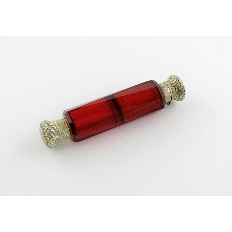 A Victorian silver-gilt mounted double scent bottle,
