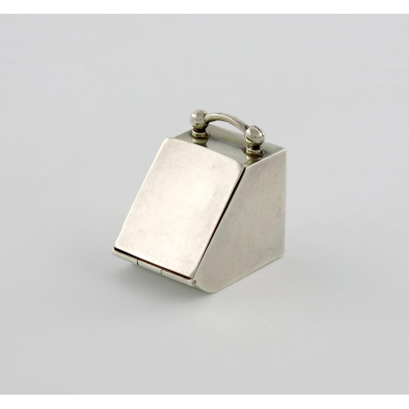 possibly for stamps, plain form, central carrying handle, hinged front, height 3.5cm, approx. weight 0.4oz.