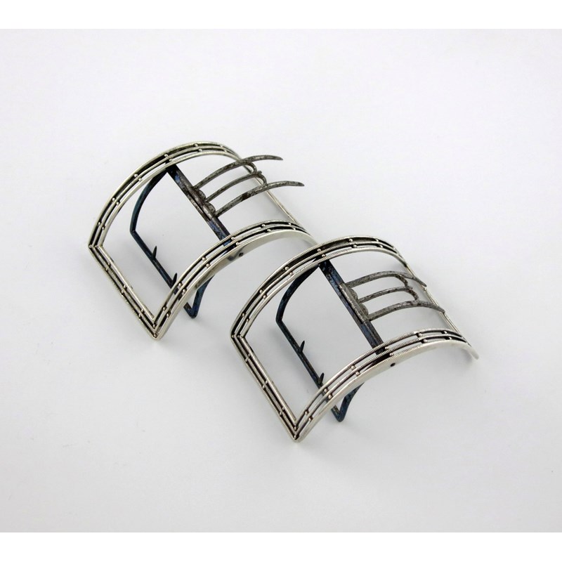 shaped rectangular form, pierced gadroon borders, steel fittings, length 8.6cm. (2)