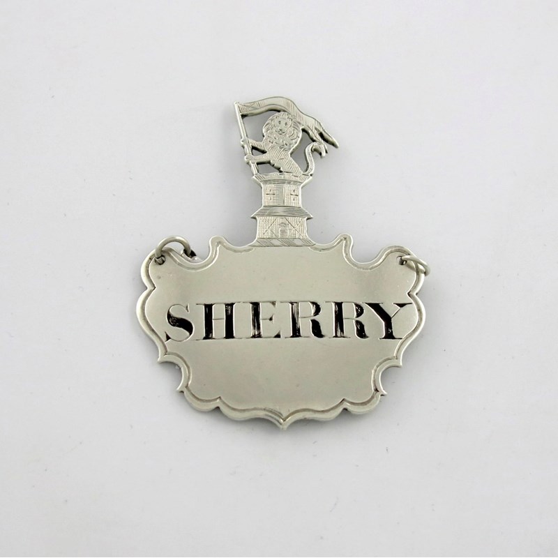 escutcheon form, mounted with a lion issuing from a castle, incised and blackened 'SHERRY', the reverse inscribed '1819' length 5.8cm, approx. weight 0.9oz