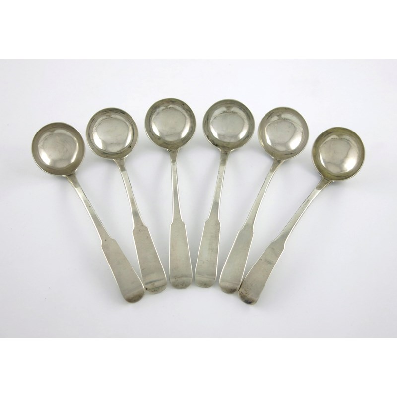 A set of six George III Scottish silver Oar pattern toddy ladles