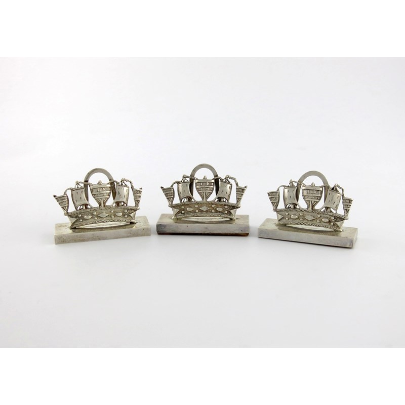 in the form of Naval Crowns, on rectangular bases, length 7cm. (3)