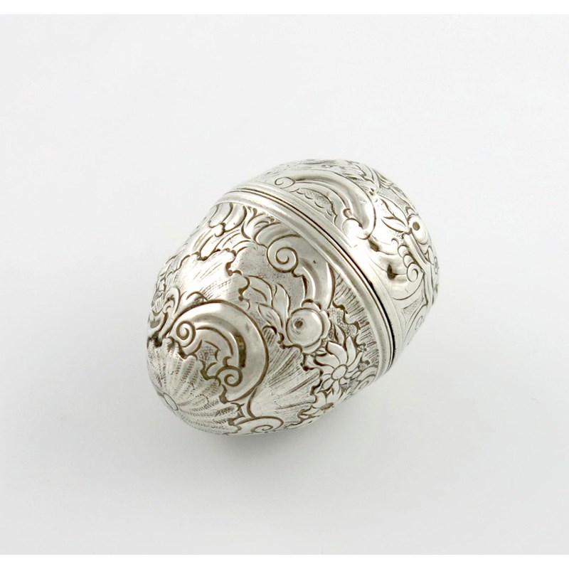egg form, screw-off cover, the interior with a pull-out grater, length 3.7cm, approx. weight 0.4oz.