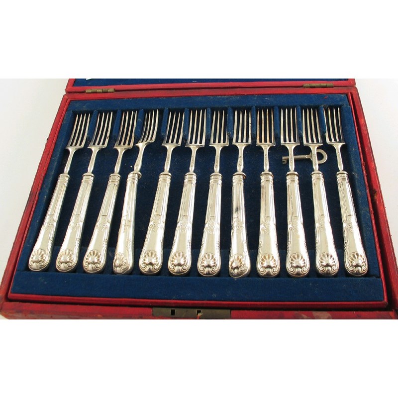 A George IV cased set of twelve pairs of dessert knives and forks,  with King's pattern handles, by Aaron Hadfield, Sheffield 1827 (loaded).