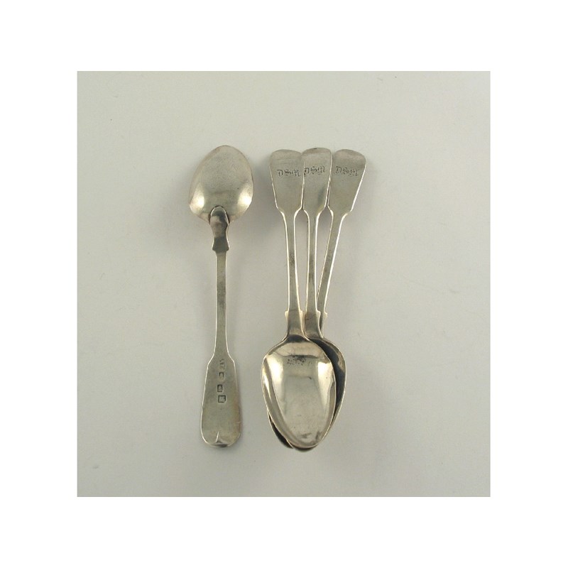 A set of four Victorian Scottish Provincial teaspoons, initialled by Andrew Davidson, Arbroath (AD, device, device, portcullis), c.1840, 2.25oz. (4)