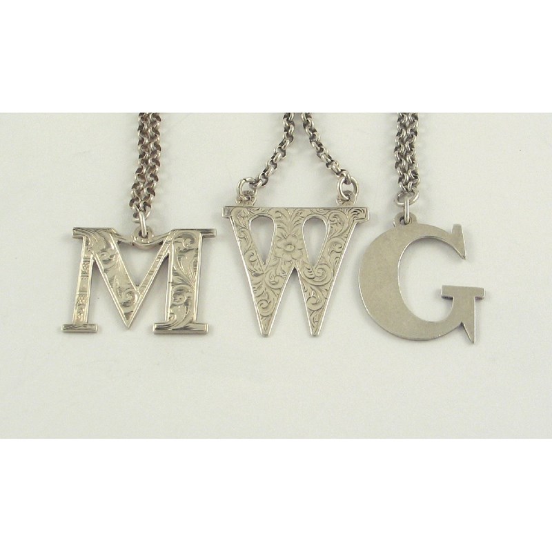 Three Victorian, cut-out letter wine labels "G", "M" & "W", all with engraving, by two maker's, George Unite & Hilliard & Thomason, Birmingham 1849/1867/1876. (3)