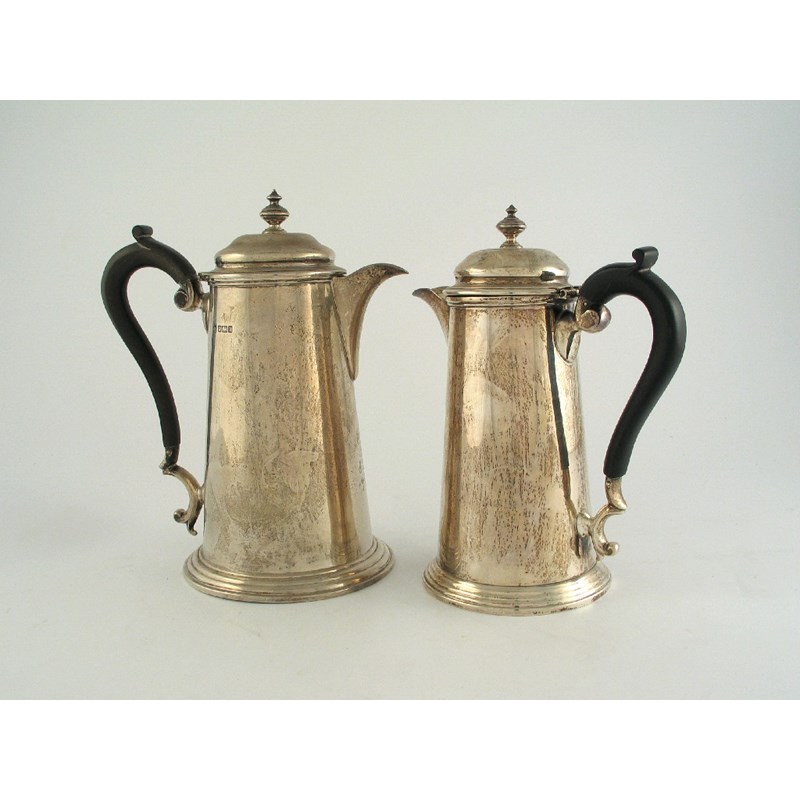 A modern tapering hot water jug, by Martin Hall and Co, Sheffield 1912, and another similar smaller example by R.Martin and E.Hall, Sheffield 1908, 32oz. (2)