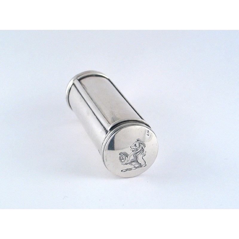 A George III Scottish tubular example with a slide action,  revealling the steel grater and nutmeg compartment, crested at one end, by William Robertson, Edinburgh 1795, 3.1in (7.7cm).