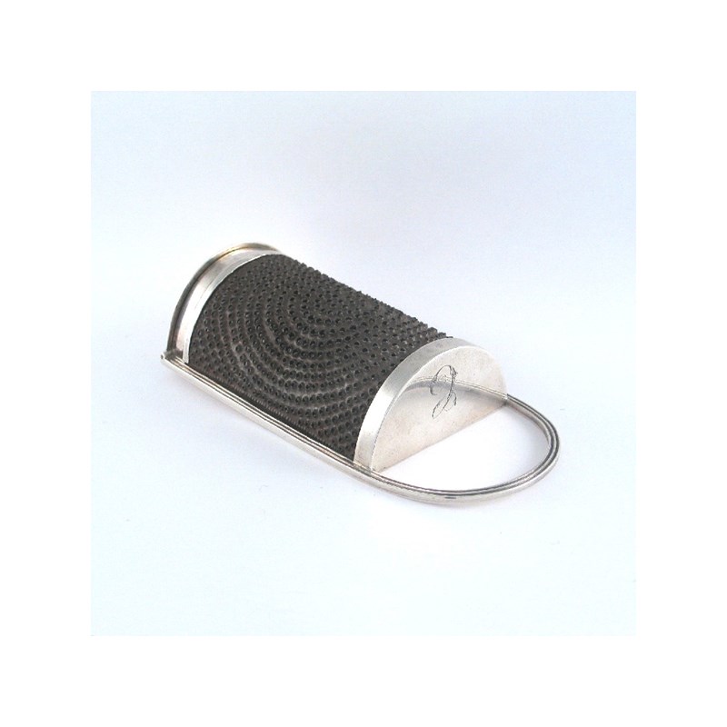 A George III kitchen type with a reeded border, and handle and a hinged, semi-circular cover, initialled "C", by Thomas Phipps & Edward Robinson, London 1804, 4.35in (11.1cm).