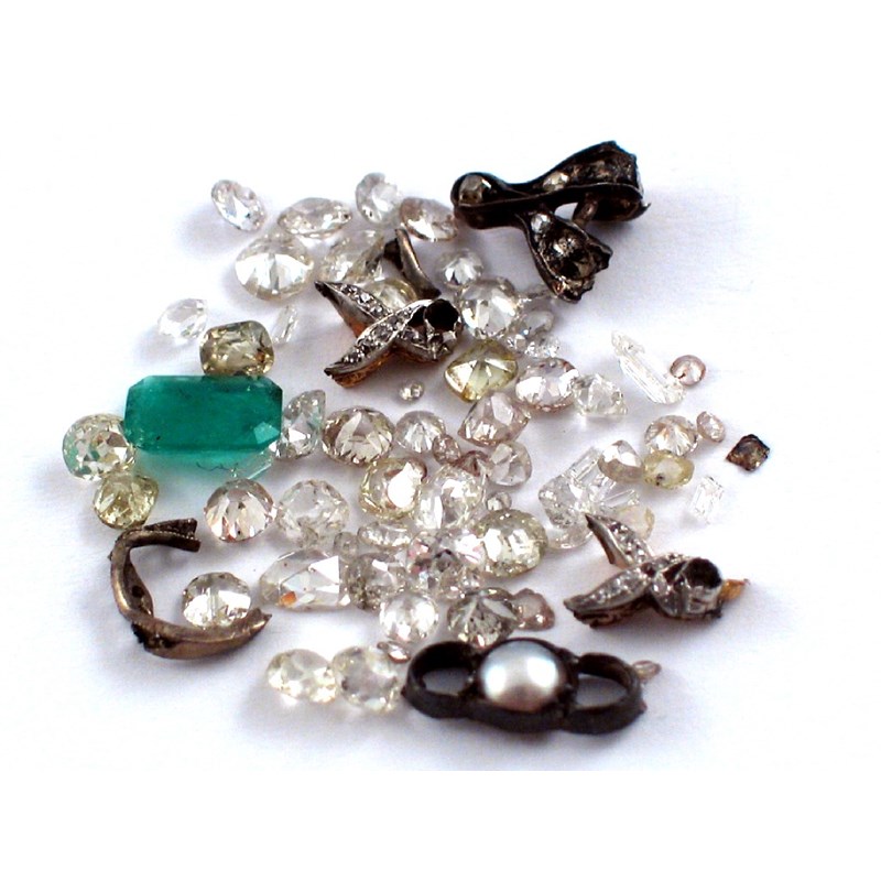 An unset emerald cut emerald which weighs approximately 1.15 carats, and assorted diamonds of various cuts which weigh a total of 9.25 carats.