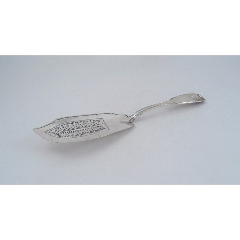 A George IV, fiddle, thread and shell pattern fish slice pierced with a fern-like panel in the blade, by W. Eley and W. Fearn, London 1823, 13in (33cm) long, 6.5oz.