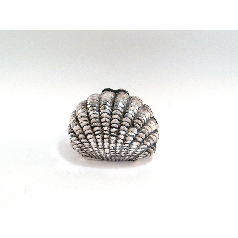 A Victorian naturalistic example, in the form of rounded shell with a textured surface, hinged in the middle to reveal a hinged grater, by Hilliard & Thomason, Birmingham 1851, 1.75in (4.3cm).