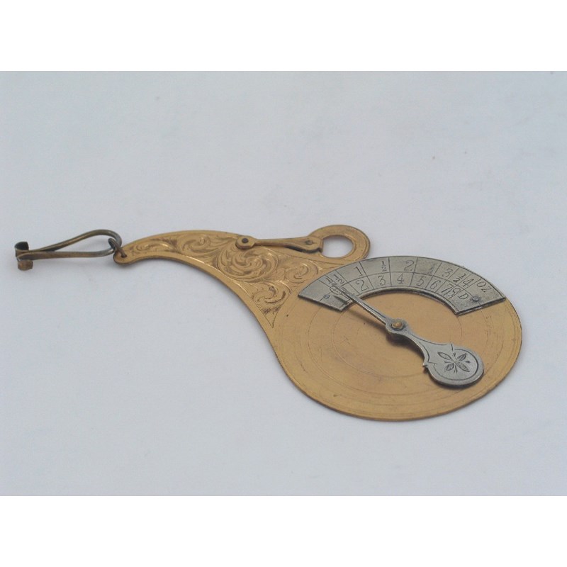 A gilt metal, Hall's Patent postal scale  with a nickel pointer and scale, retailed by, PARNELL LONDON, 5in (12.6cm) long.