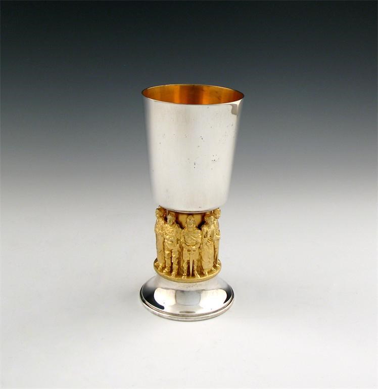 celebrating the ninth century of Winchester Cathedral, tapering circular bowl, on a silver gilt stem modelled as figures with a connection to the cathedral, on a raised circular foot, numbered 467 out of an edition of 900, height 16.4cm, approx. weight 12oz.