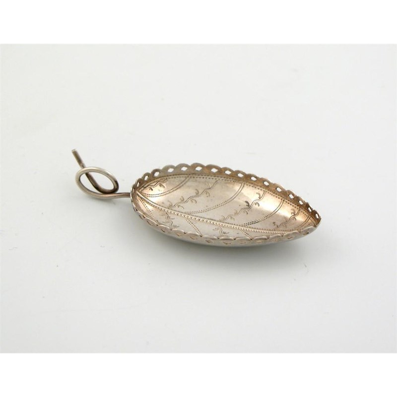 leaf form, pierced border, engraved foliate decoration, wirework handle, length 6.8