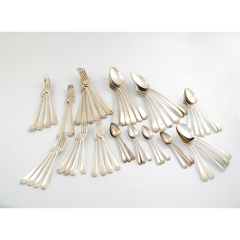 A matched George III silver Hanoverian and Old English pattern canteen for twelve,
