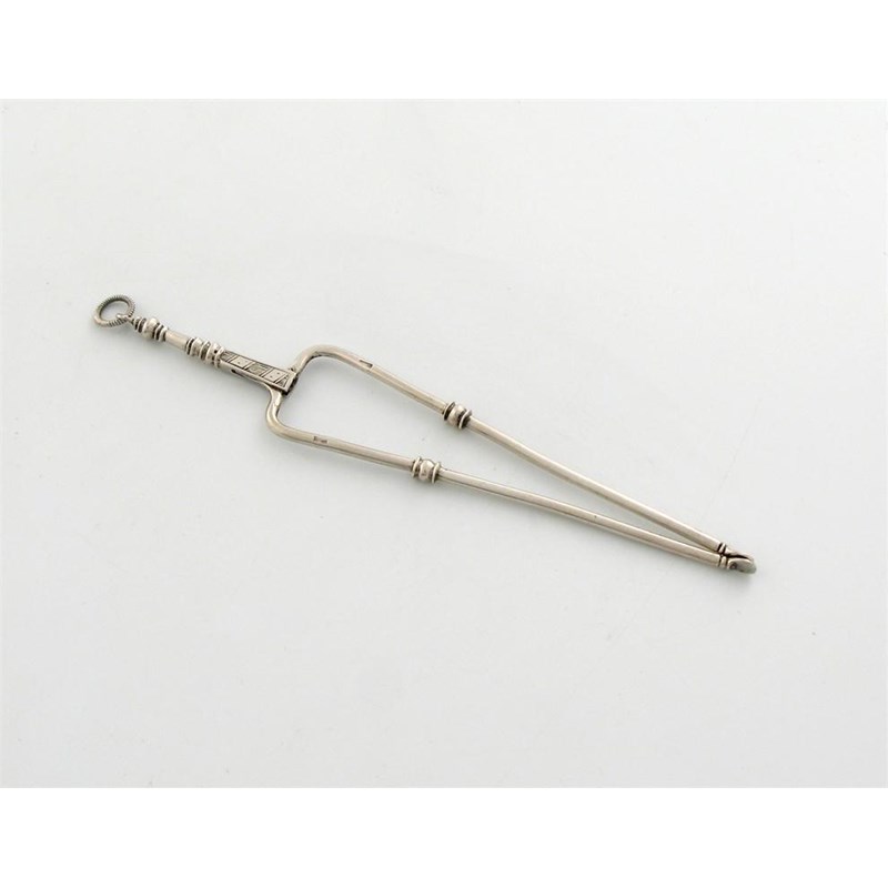 small oval bowls, the baluster terminal with engraved decoration and with a ring handle, length 12.5cm, approx. weight 0.3oz.