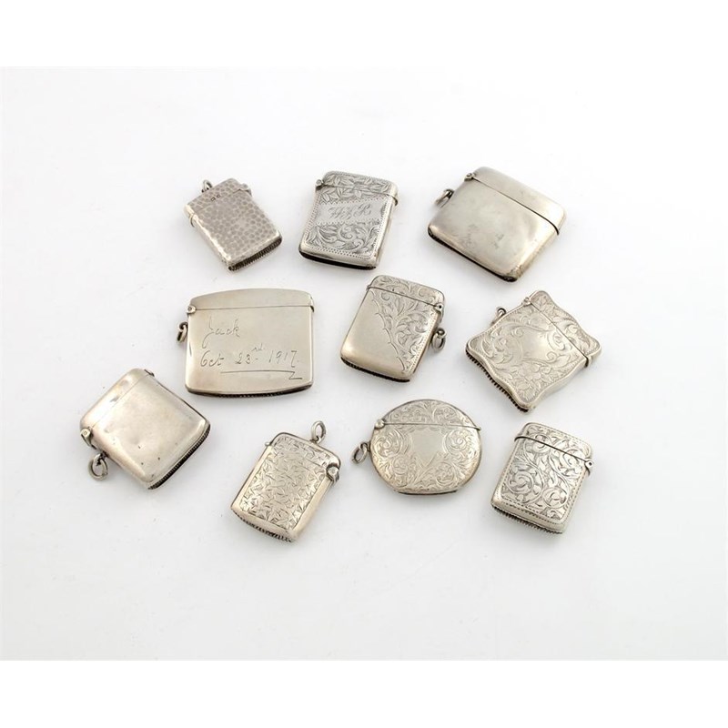 comprising: one of circular form, engraved foliate decoration, five with engraved foliate decoration, three plain and one with spot-hammered decoration, approx. weight 8oz. (10)