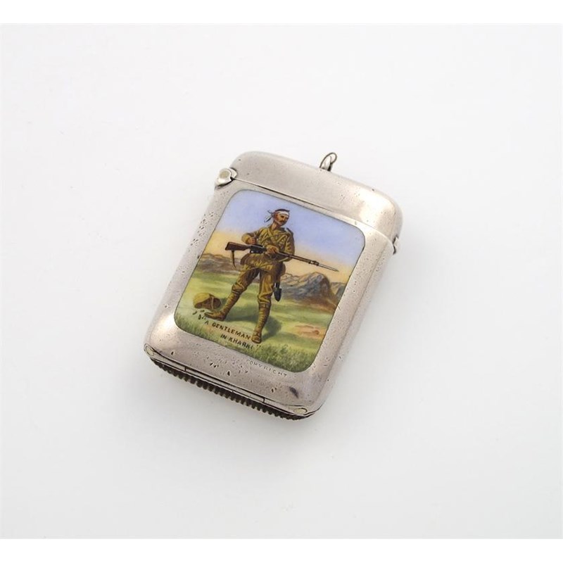 Boer War interest, a late-Victorian silver and enamel vesta case,