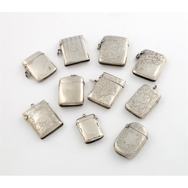 comprising: five with engraved foliate decoration, three plain and one with engine-turned decoration, approx. weight 7.5oz. (10)