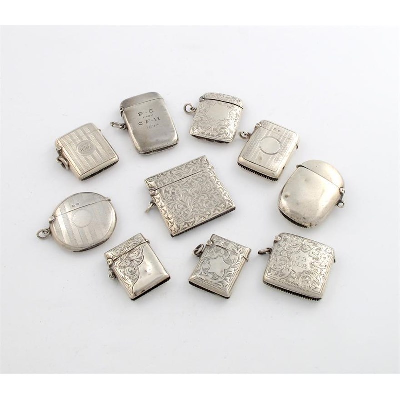 comprising: one of circular form, engine turned decoration, five with engraved foliate decoration, two plain and two with engine-turned decoration, approx. weight 7.5oz. (10)