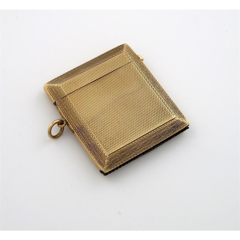 rectangular form, engine turned decoration, length 4.8cm, approx. weight 28.3g.