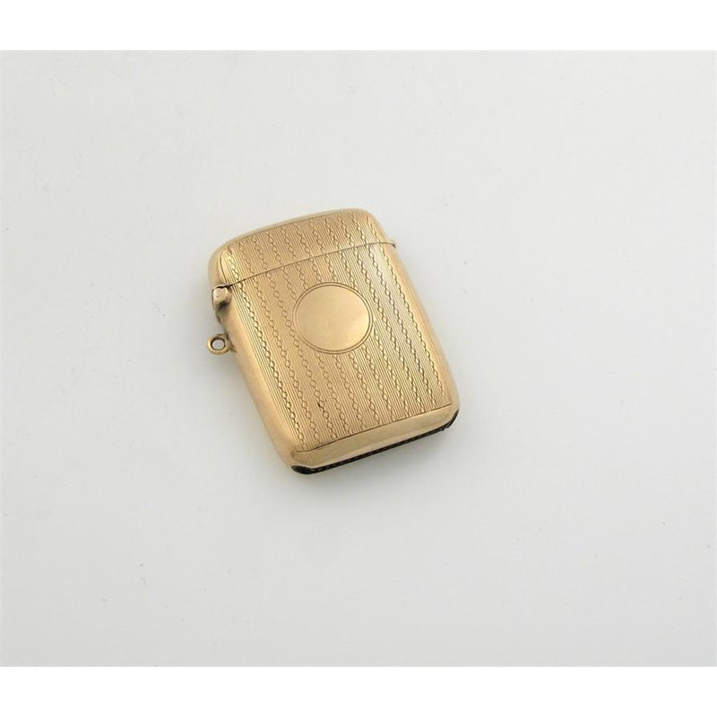 rectangular form, engine-turned decoration, with a plain circular cartouche, length 5.7cm, approx. weight 35.5g.