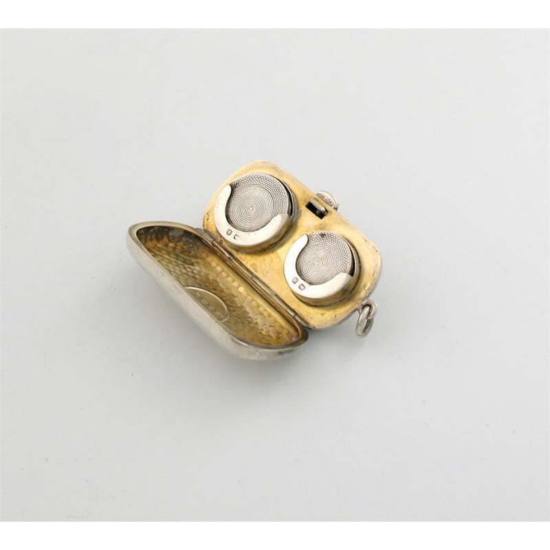 rounded rectangular form, spot-hammered decoration, inscribed, with a ring attachment, length 6.6cm, approx. weight 1.5oz.