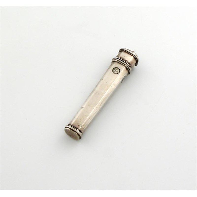 tapering rectangular form, canted corners, engraved with rose heads motifs, length 8.5cm, approx. weight 1oz.