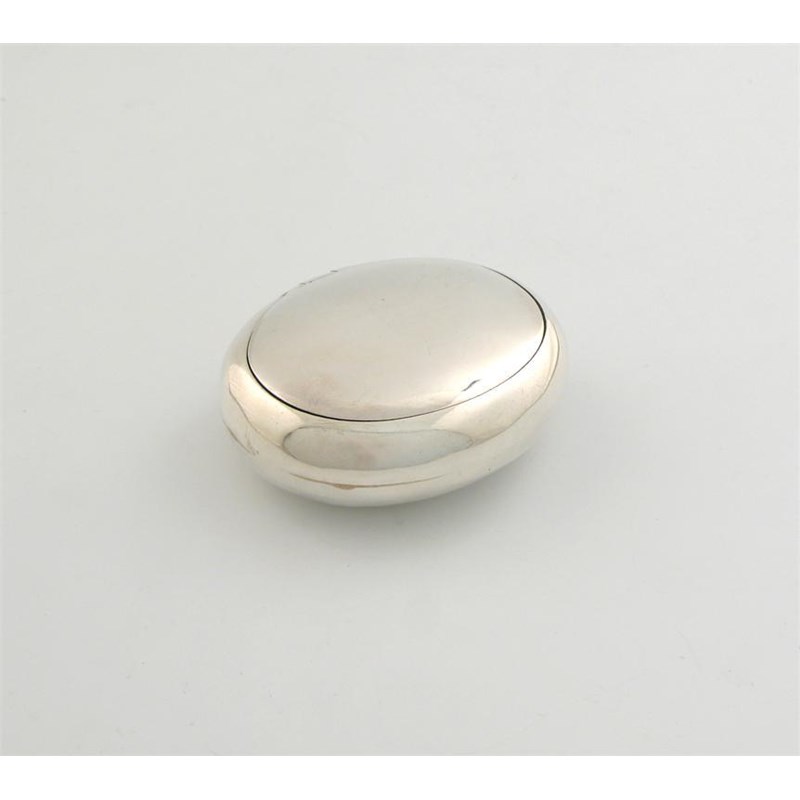 oval form, flush-hinged cover, length 8.3cm, approx. weight 2oz.
