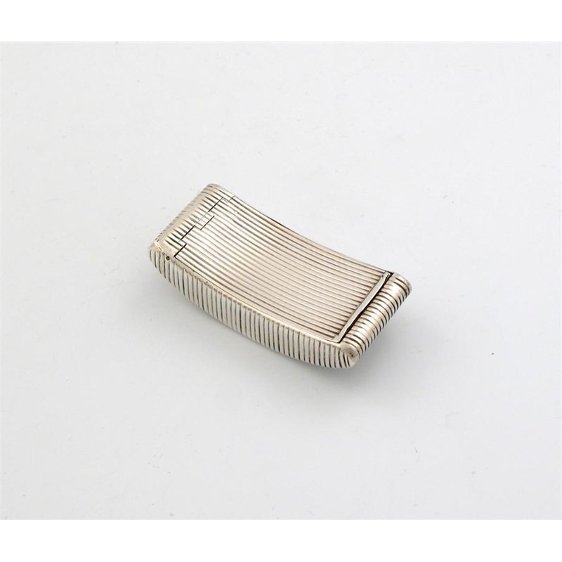 fluted concave rectangular form, flush hinged cover, length 6.5cm, approx. weight 1.1oz.