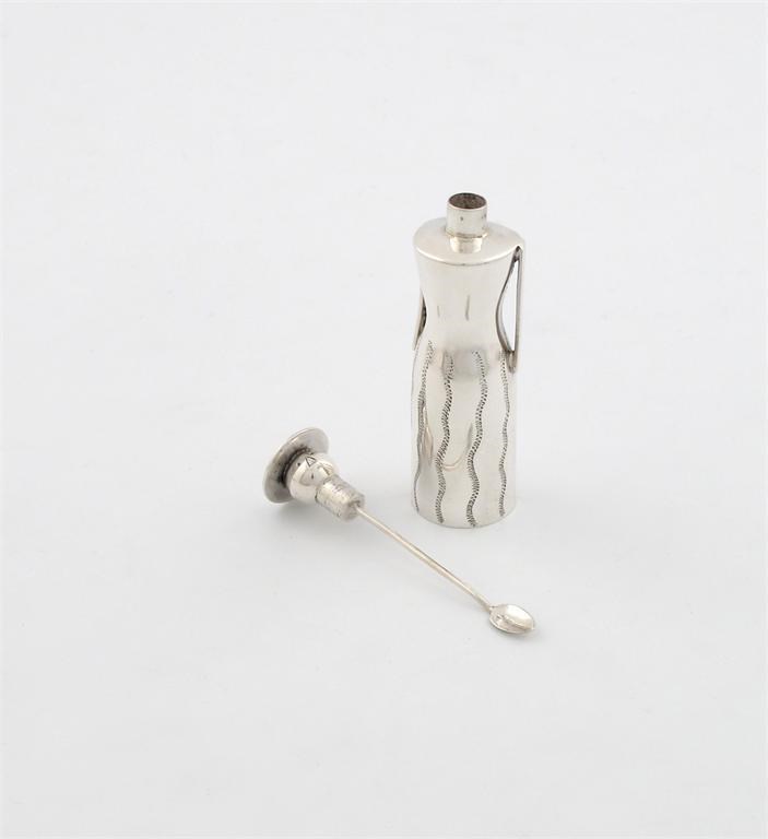 modelled as a stylised lady wearing a hat, her head pulls off to reveal a spoon, height 7.2cm, approx. weight 0.6oz