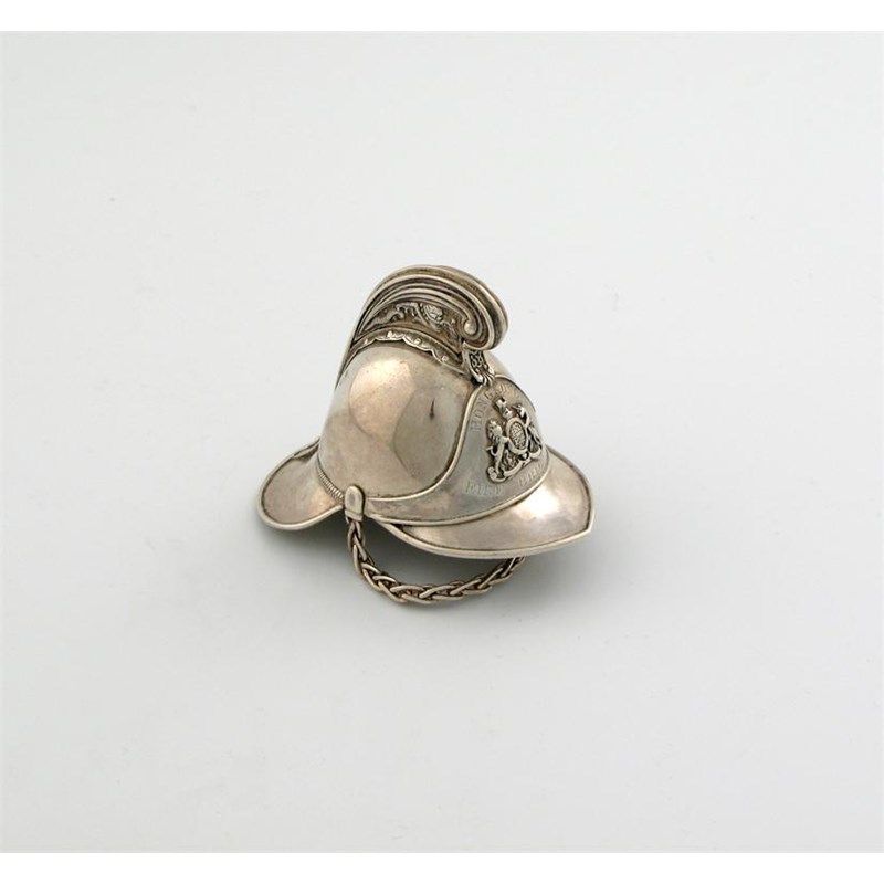 A miniature silver fireman's helmet,