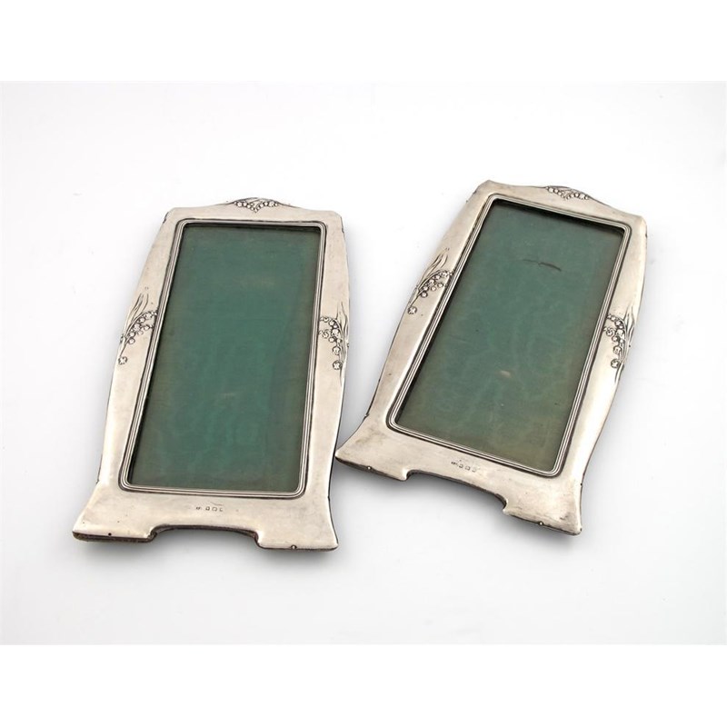 rectangular form, embossed flower decoration, on bracket feet, easel backs lacking supports, height 29.5cm. (2)