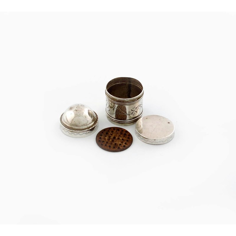 cylindrical form, with a pull-off base and domed cover, length 3.3cm, approx. weight 0.3oz.