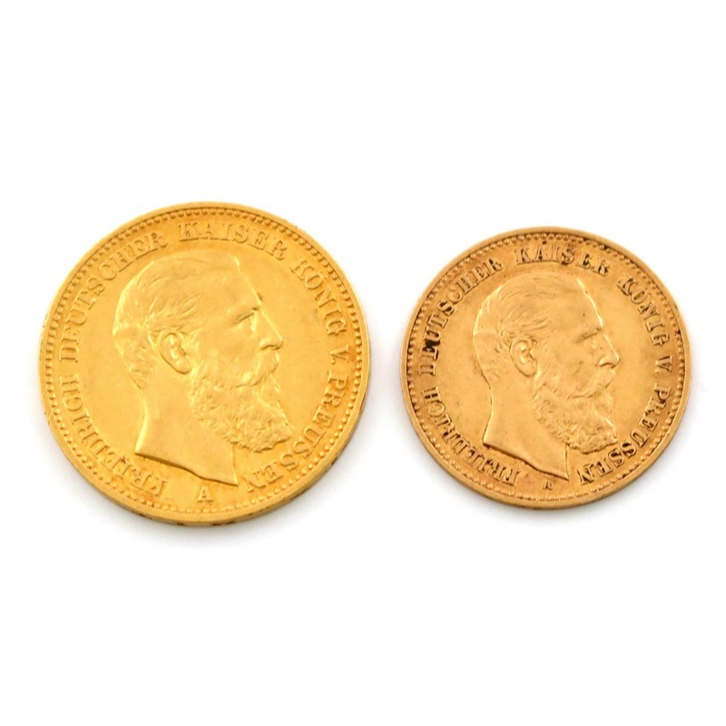 Germany, Empire, Prussia, Friedrich III, 20-Marks and 10-Marks, 1888 A (F 3828, 3829). Very fine. (2)