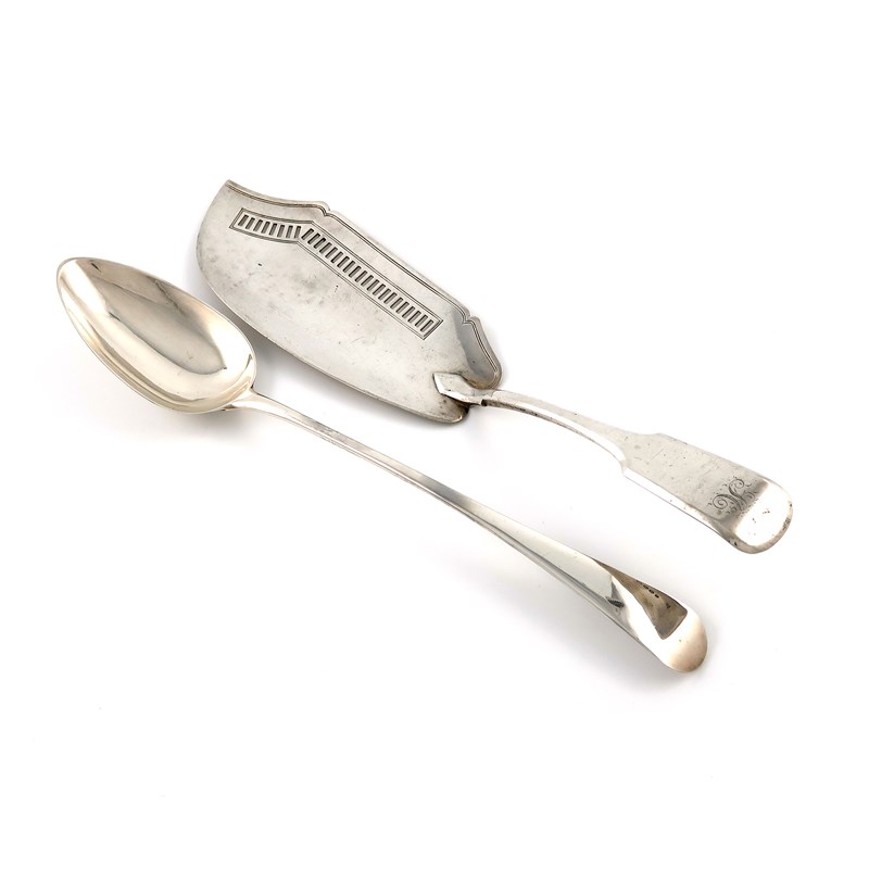 plain terminal, plus a George III silver Fiddle pattern fish slice, London 1806, the terminal initialled, approx. weight 8oz. (2)