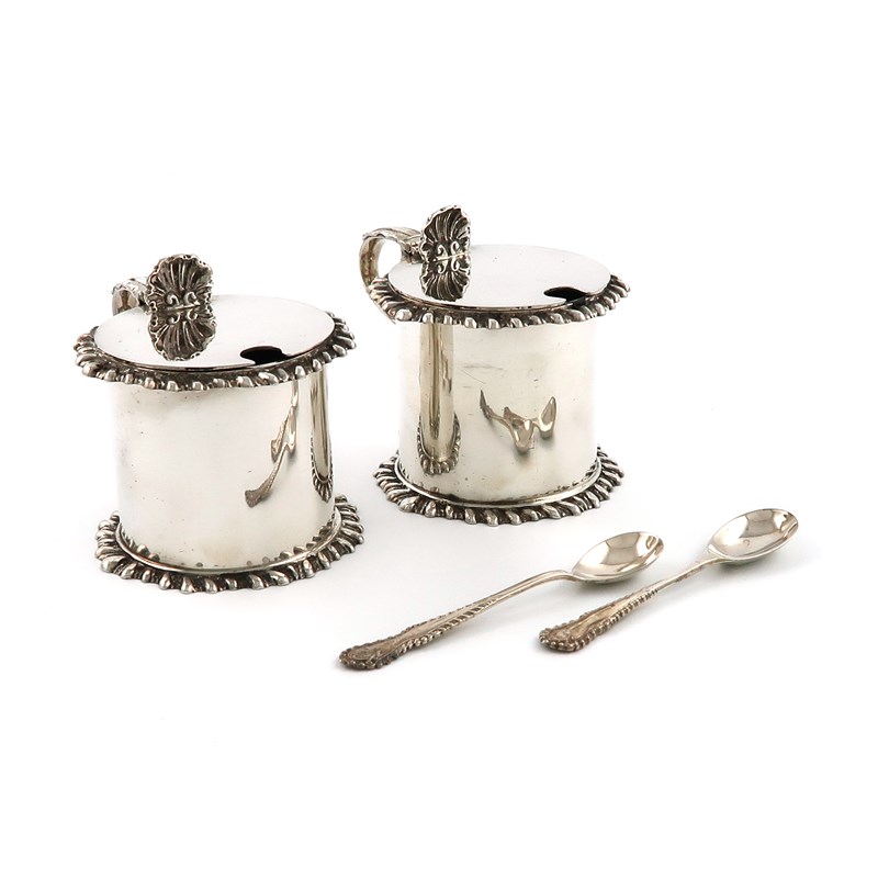 A pair of silver mustard pot