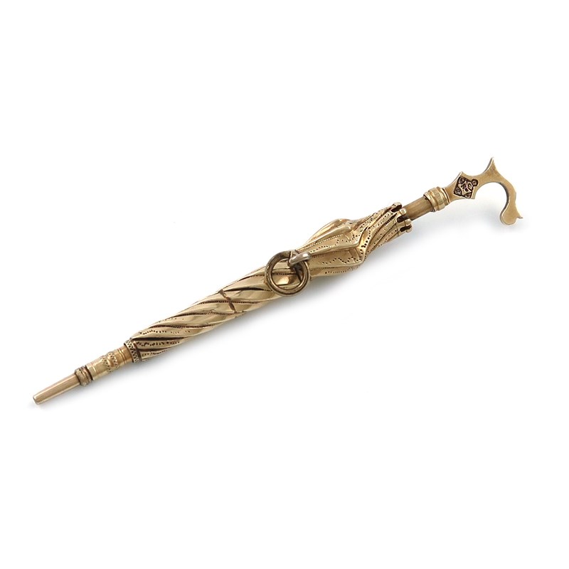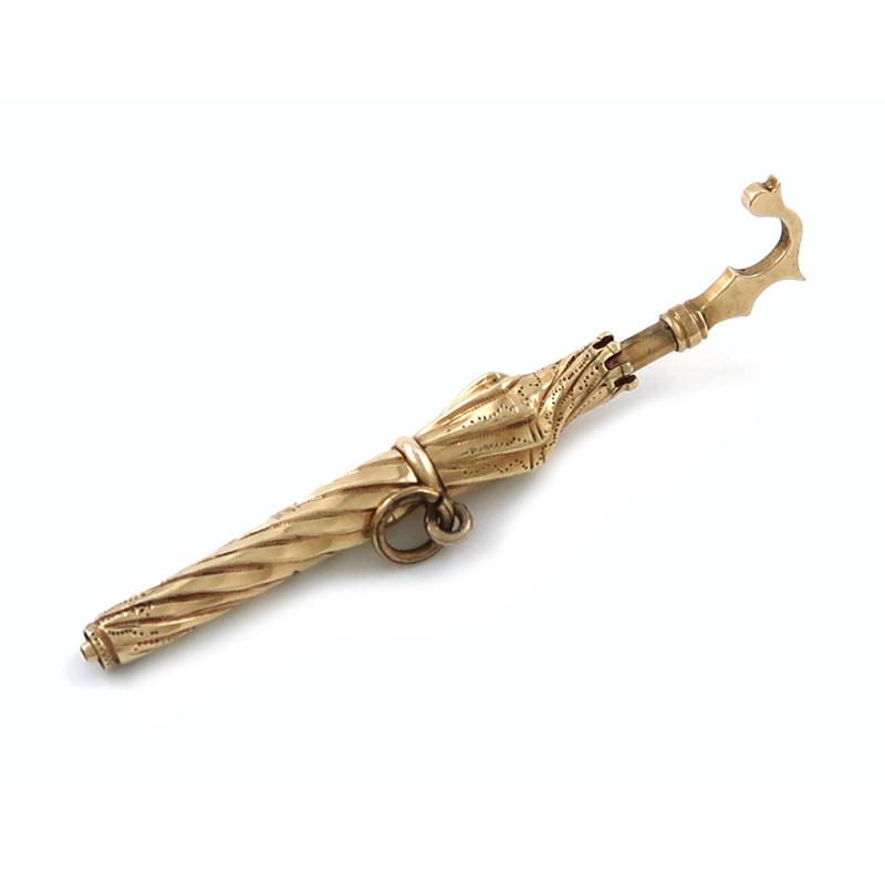 modelled as a closed umbrella, with a ring attachment, length closed 5.2cm.