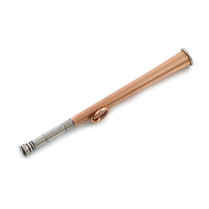 modelled as a hunting horn, tapering form with a ring attachment, length closed 8.4cm.