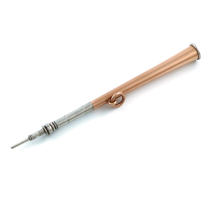 A Victorian novelty silver and gold twist-action propelling pencil,