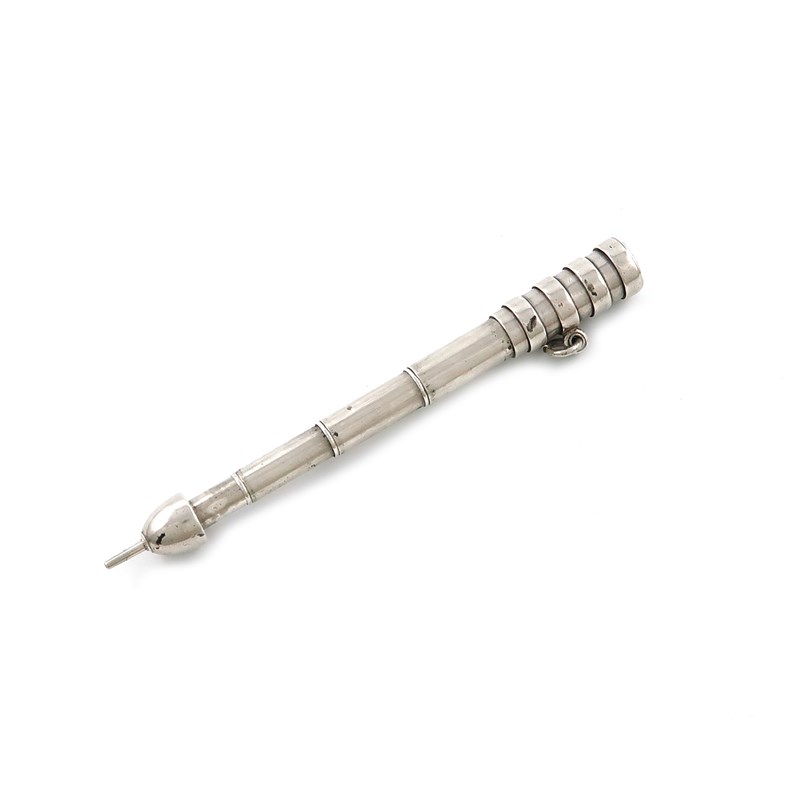 modelled as a Palliser bullet, with a ring attachment, the terminal initialled and dated '6/11/84', length closed 3.7cm.