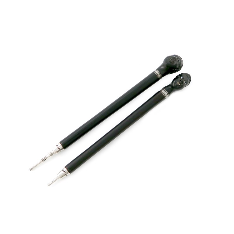 A pair of Victorian novelty silver-mounted carved ebony twist-action propelling pencils